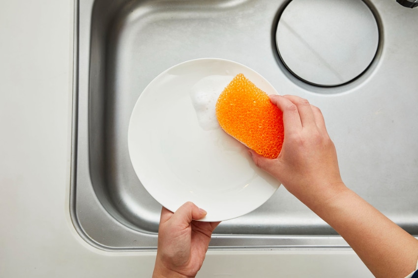 水切れ泡切れがよい衛生的な目の粗いウレタンと洗剤含みのよいウレタンに汚れをしっかり落とすナイロン不織布(研磨材入り)を貼りあわせた3層構造のキッチンスポンジです。