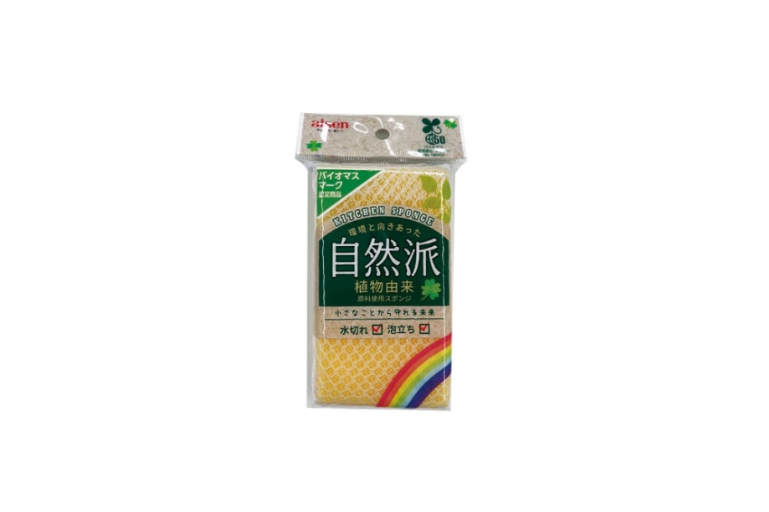 スポンジ部分に植物由来の原料を50%以上配合し、バイオマスマークの認定を受けたキッチンスポンジです。