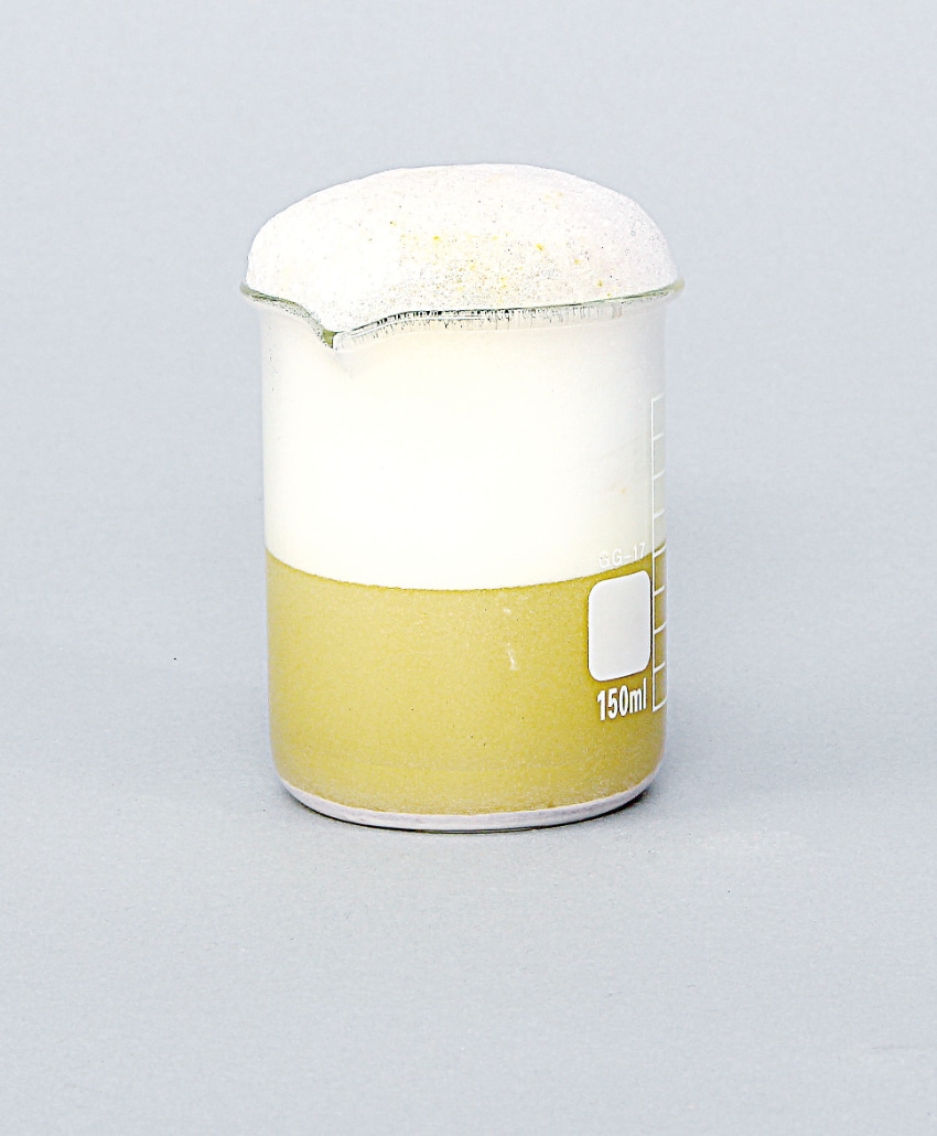 そのヨードは、水に入れると発泡して、そのパワーを発揮します。この泡が、ヌメリの元から除菌してくれるのです!