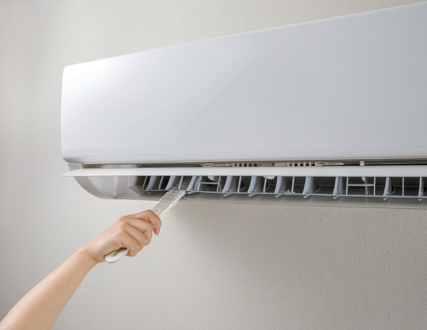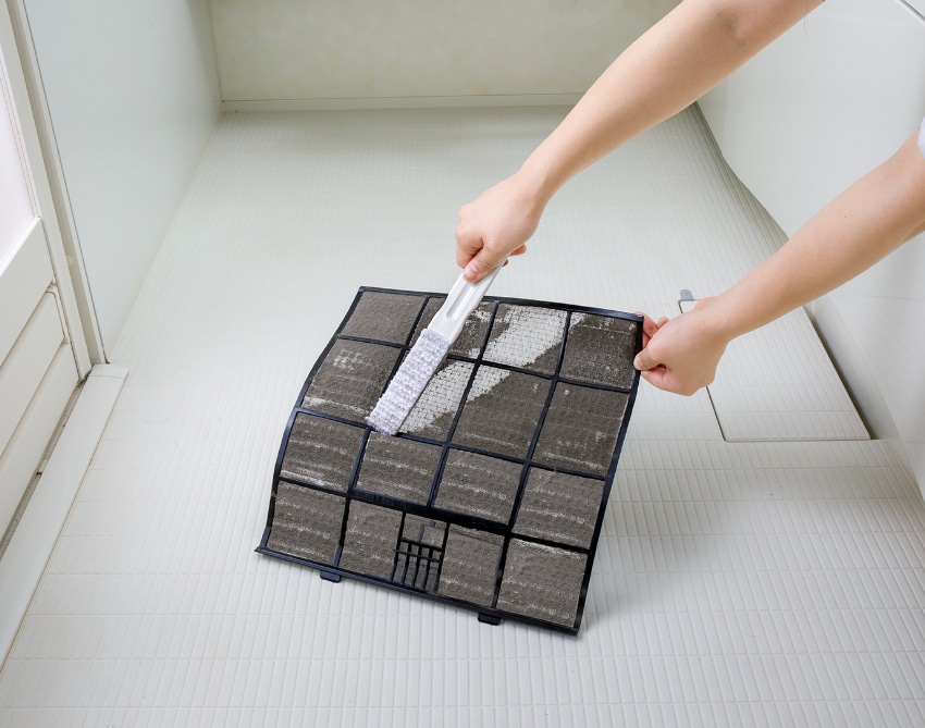 水に濡らしてこするだけで、エアコンの黒い汚れを落とすことができます。