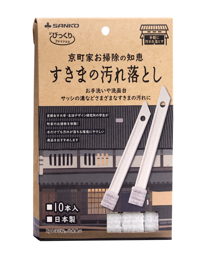 トイレや浴室、洗面台などの手が届きにくいすきまのお掃除に最適です。不織布部分には特殊形状の繊維を使用しているので、水だけでも汚れをかき落とします。