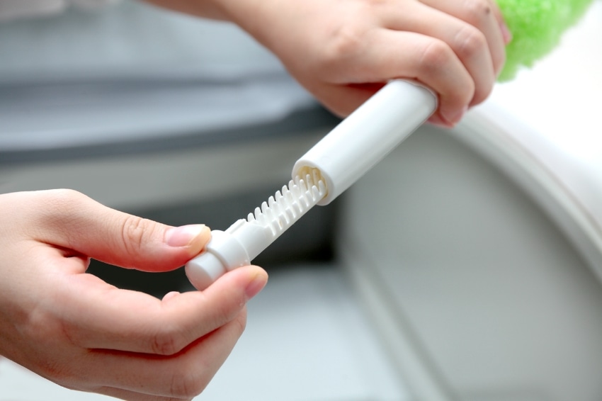 クリーナーについた糸くずやゴミ、髪の毛などを簡単に取り除けるお手入れ用のくず取りブラシ付き。