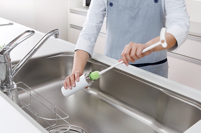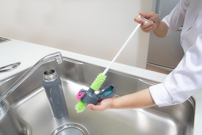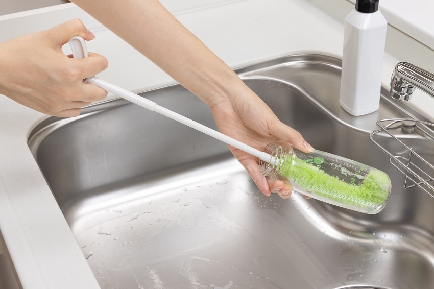 クリーナー部分を自由に手で曲げられるので、ボトルにそって洗えます。