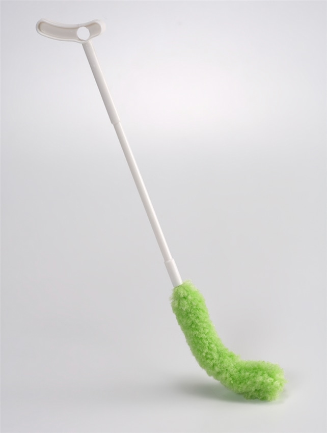 持ち手がT字型でにぎりやすくなっています。特殊形状の繊維を使用しているので、水だけでも汚れをかき落とすことができます。