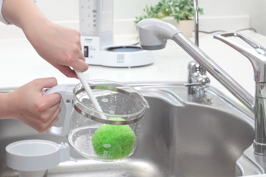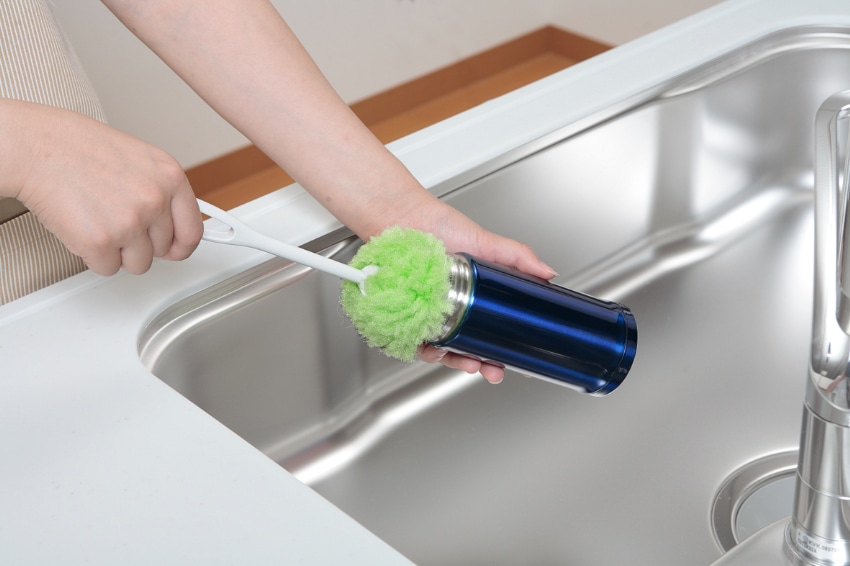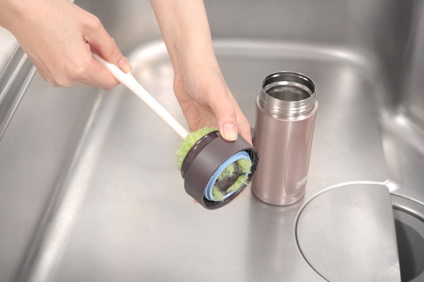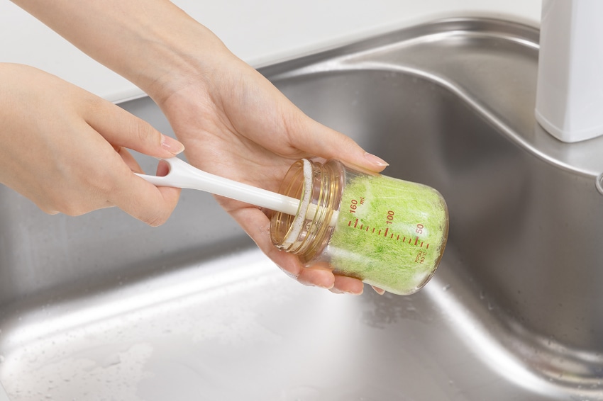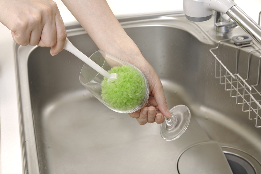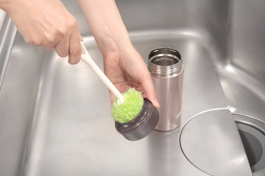 クリーナータイプで、コップの底のスミまできれいに洗えます。特殊形状の繊維を使用しているので、水だけでも汚れをかき落とすことができます。