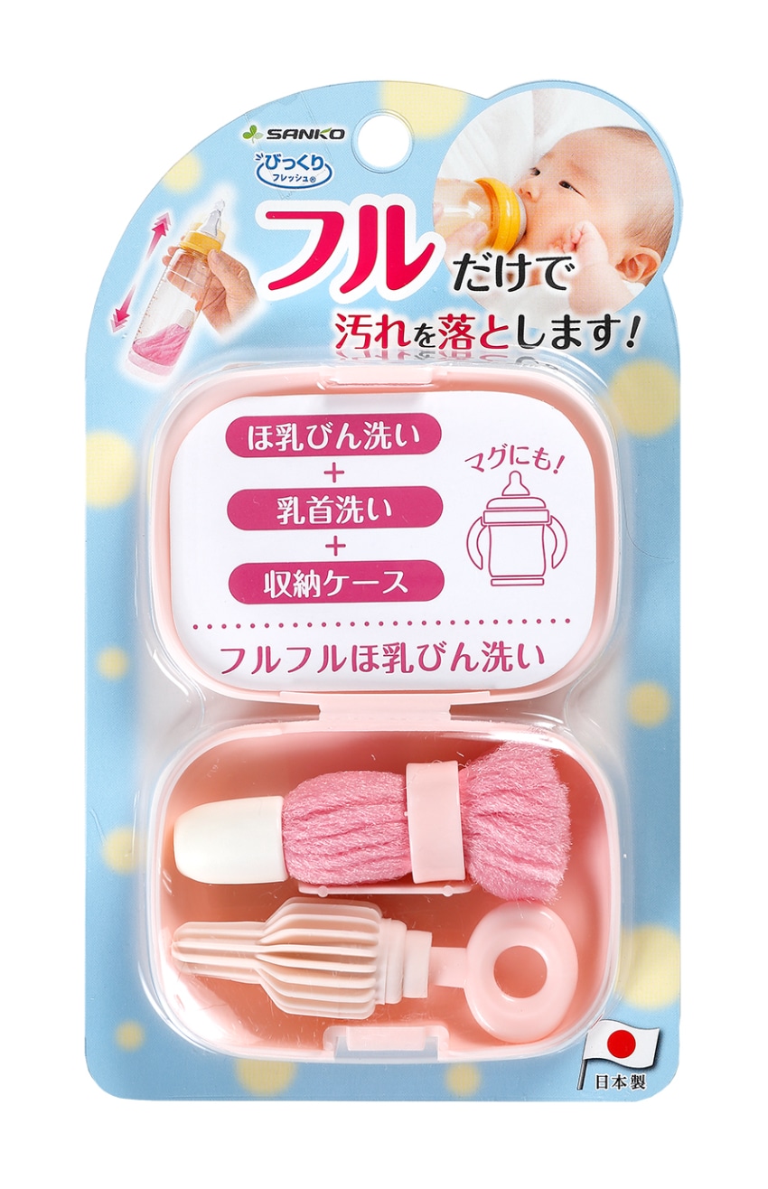 ■ 商品サイズ:<ほ乳びん洗い>全長7.5cm <乳首洗い>7.5cm <収納ケース>9×6.5×3cm