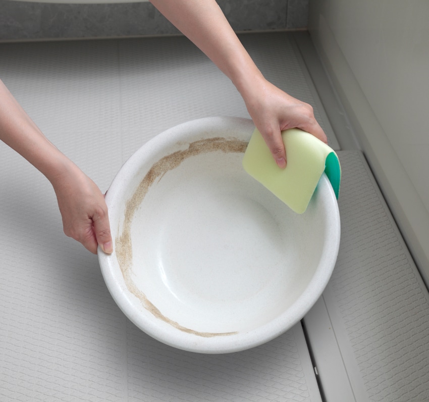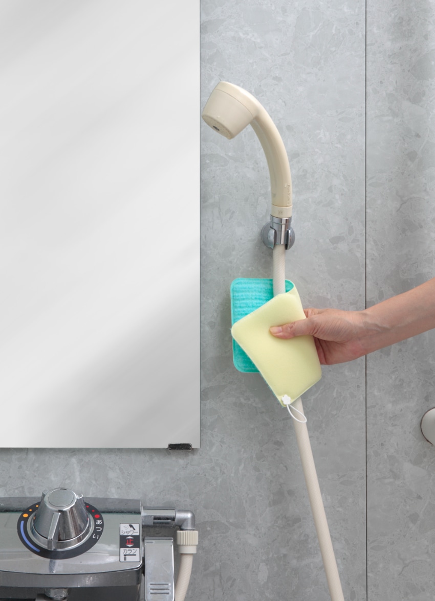 特殊形状の繊維で水だけでも湯アカなどの汚れを簡単にかき落とすことができます。洗剤を使用する場合でもごく少量で汚れが落とせるため、経済的です。