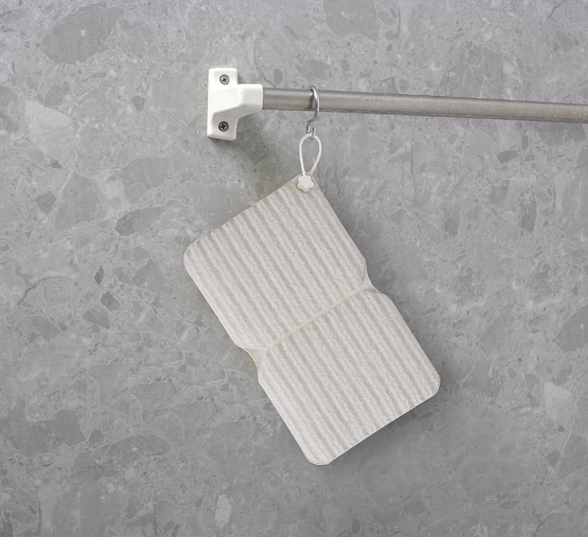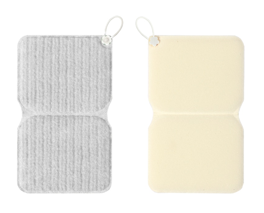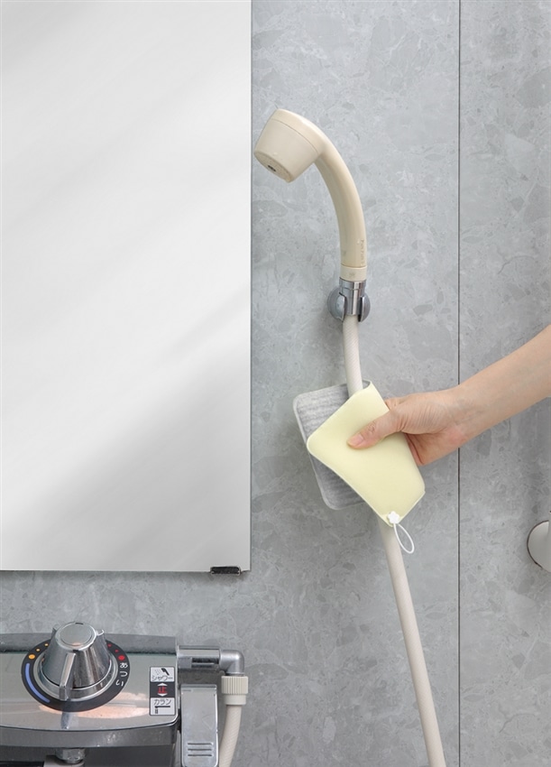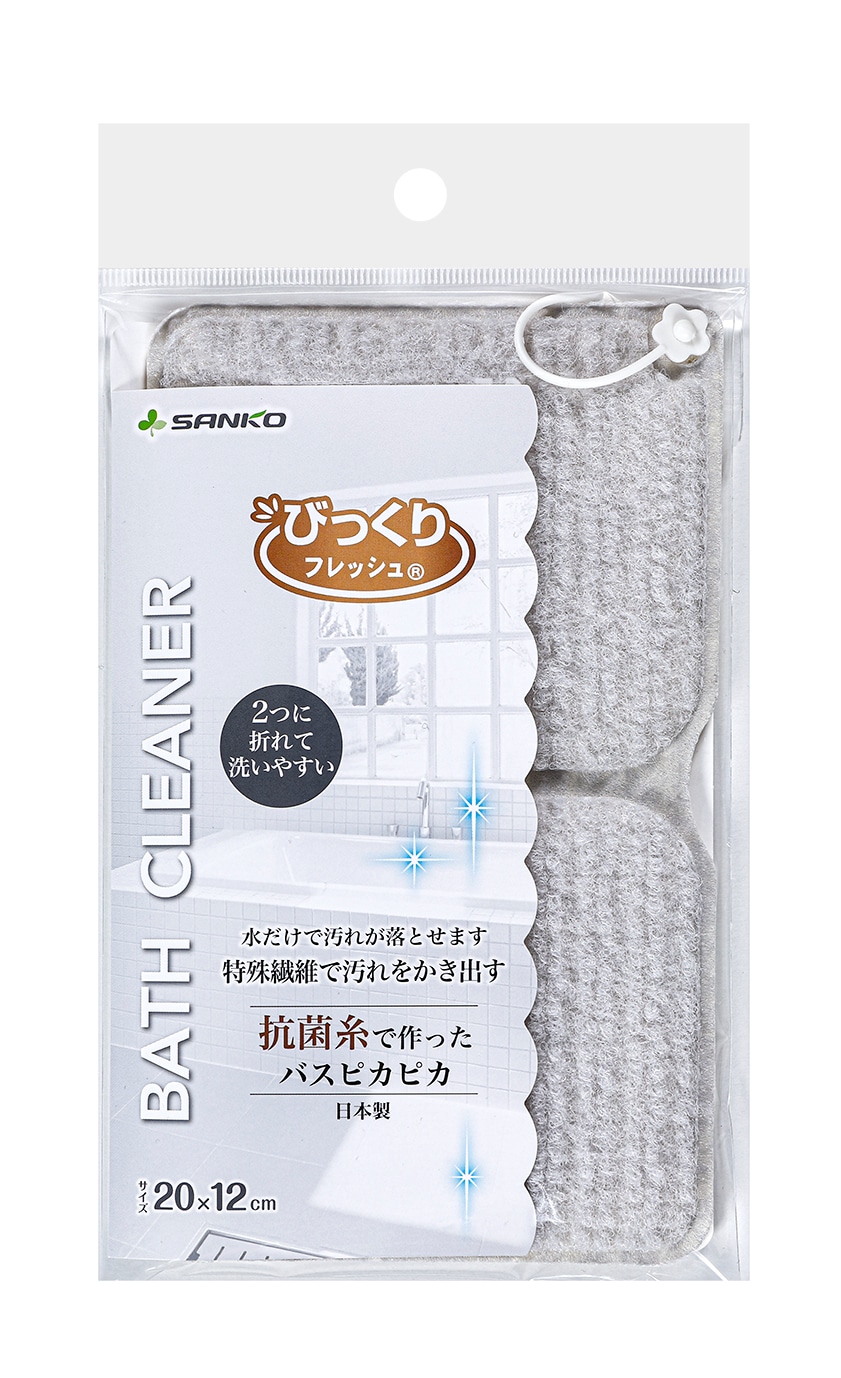 抗菌加工を施した糸を使用しています。特殊形状の繊維で水だけでも湯アカなどの汚れを簡単にかき落とすことができます。