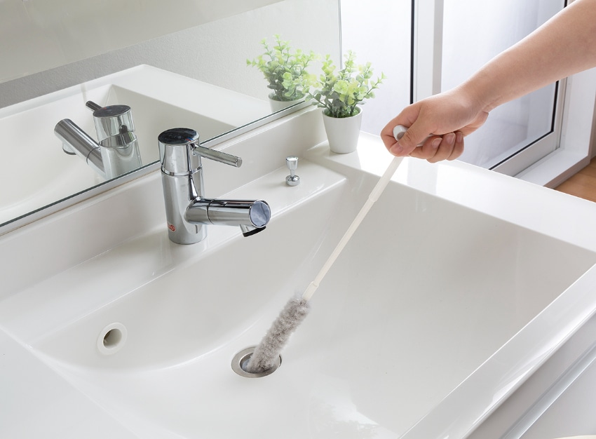 特殊形状の繊維を使用しているので、水だけでも汚れをかき落とすことができます。繊維で洗うので水ハネせず、キズをつけません。