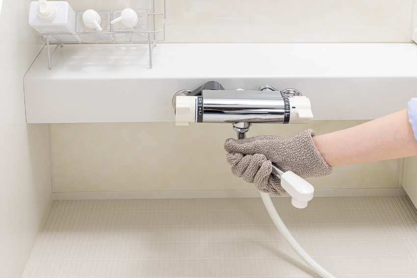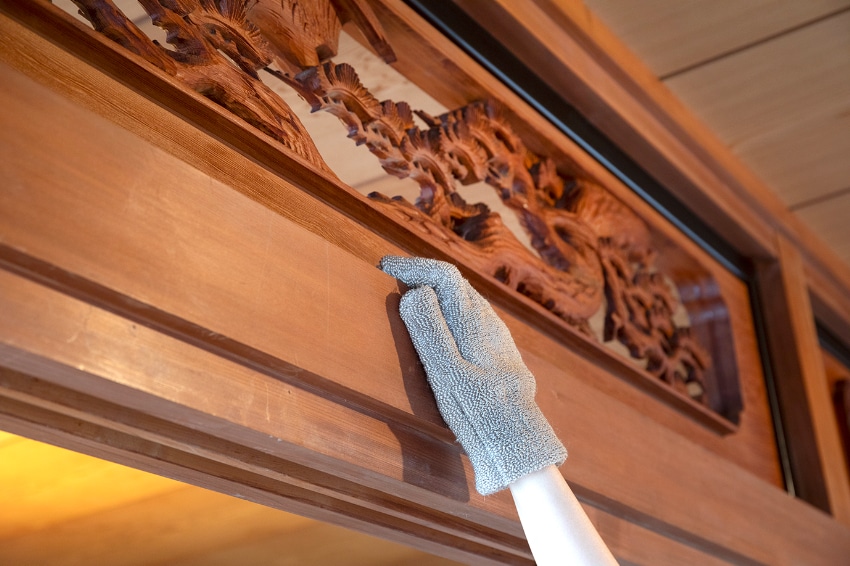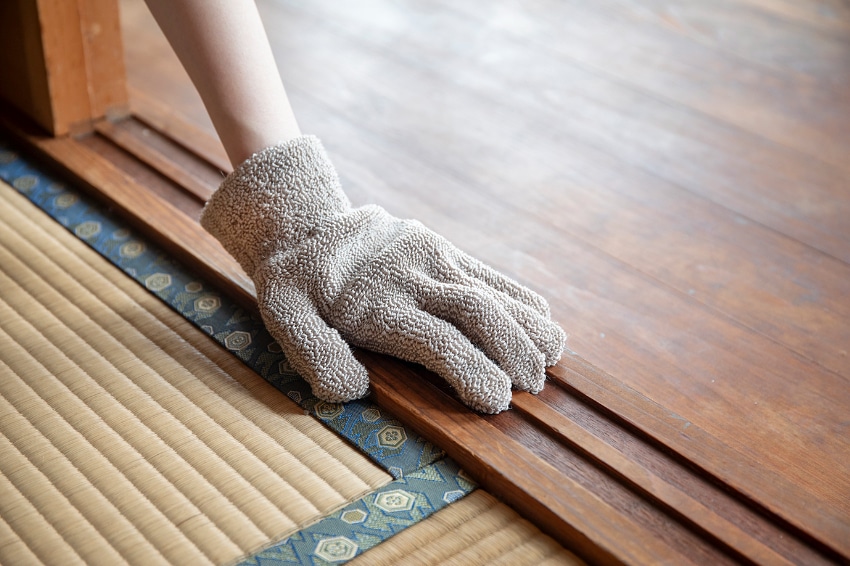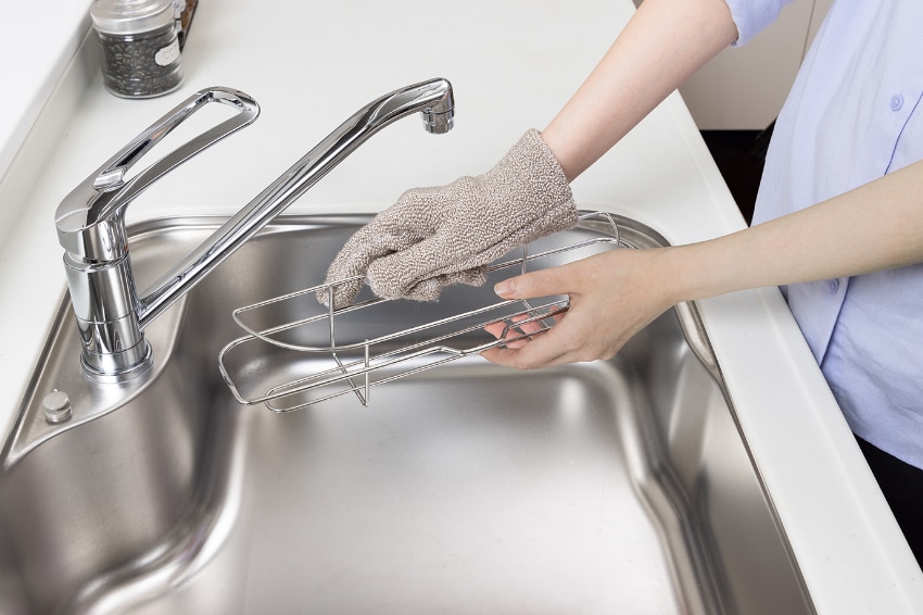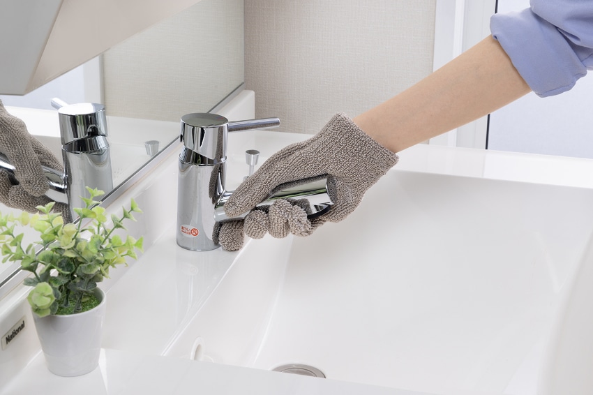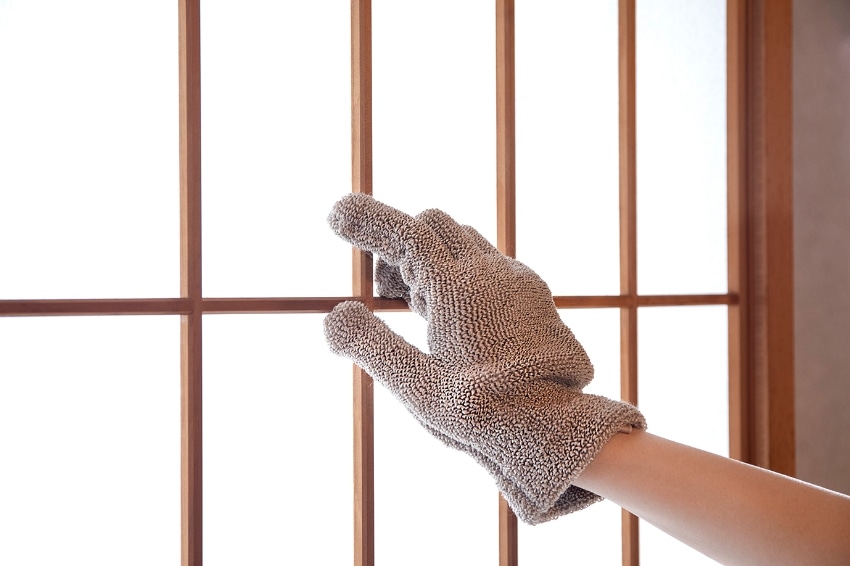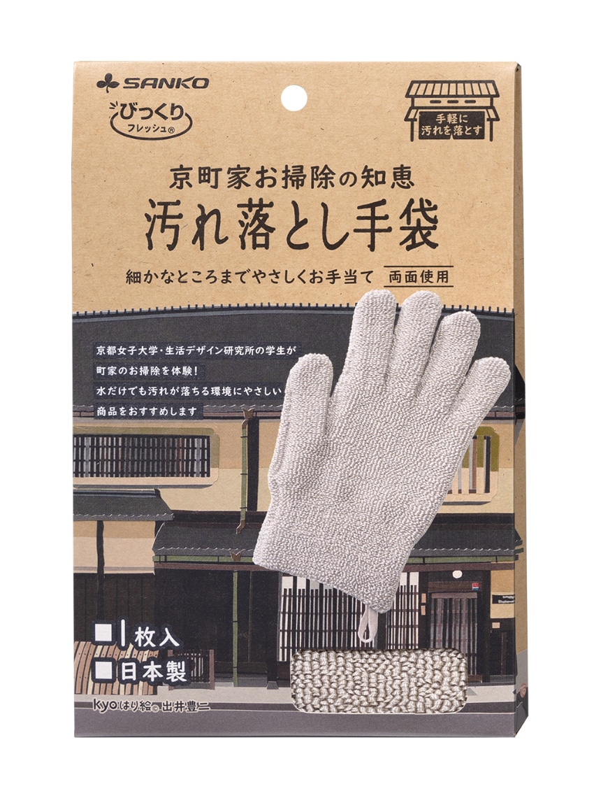 手にはめるので、広い面も細かいところも洗えます。水だけでも汚れを落とす繊維なので、キズをつけません。