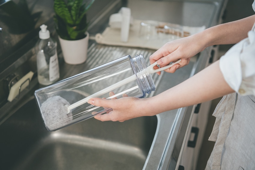洗剤を使用する場合でもごく少量で汚れが落とせるため、経済的です。洗浄部が繊維ですので冷水筒やステンレスボトルの底やスミまで届き、汚れをきれいにします。