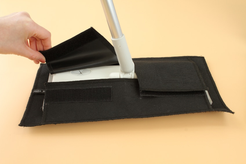 ゴム手袋の上からでも付けられます。ご自宅でお使いのフローリングワイパーに付けて使います。