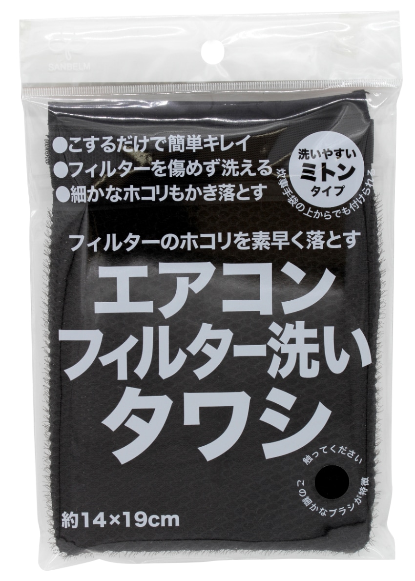 水だけでもスッキリきれいに、手にはめて洗えるエアコンフィルター洗いタワシ。