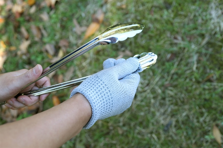 このたわしはミトン型と違って、人差し指が独立した3本指タイプ。手のひらで洗えば広い面を一気に洗え、人差し指を使えば細かな部分やはさみ洗いができます。
