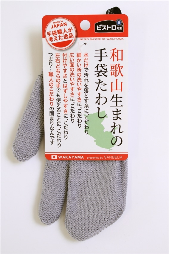 和歌山の手袋職人が考えた手袋型のたわしです。左右兼用でどちらの手にはめても使えます。