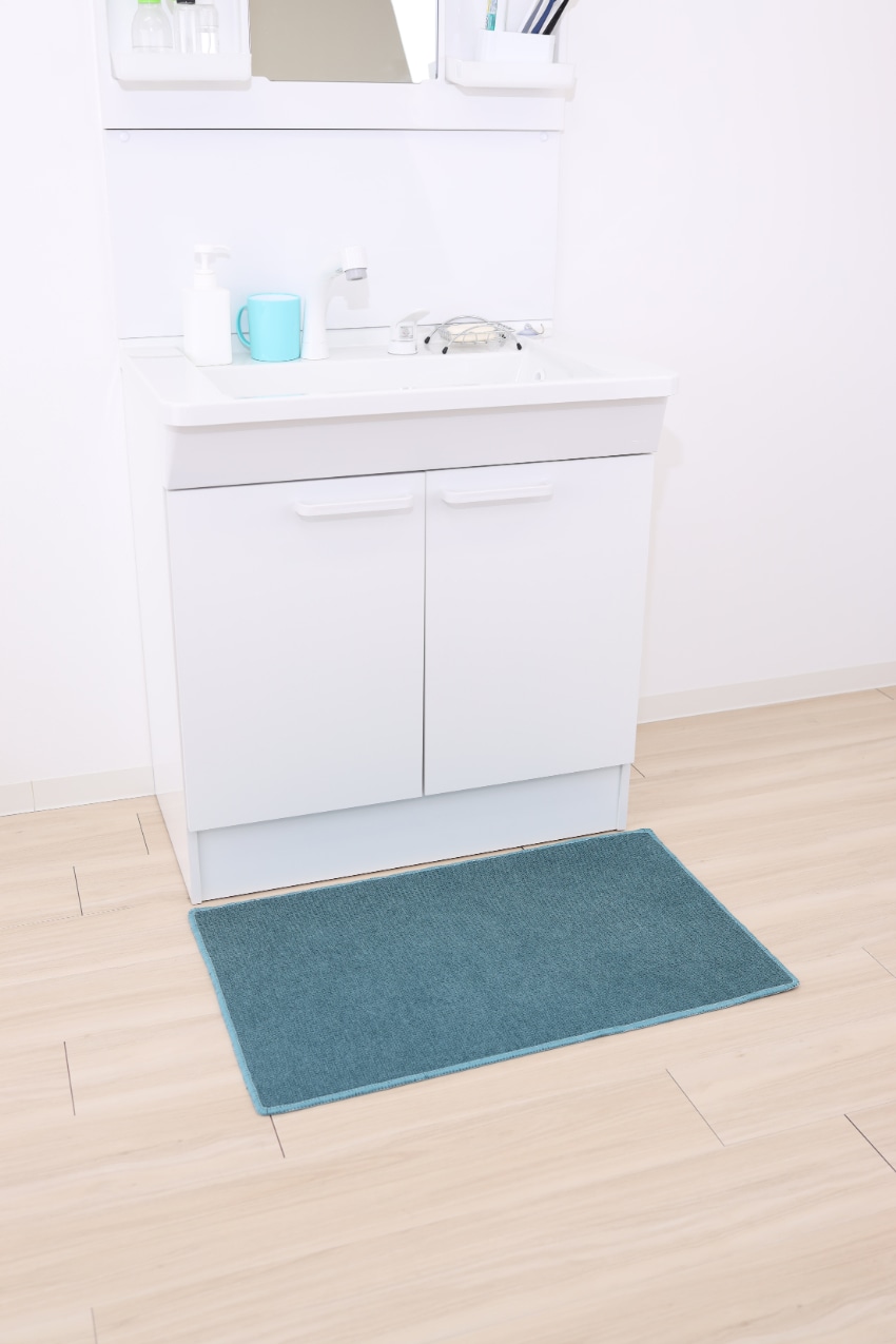 洗面台前や洗濯機前にこのマットを敷いて、床をキレイに保つ!