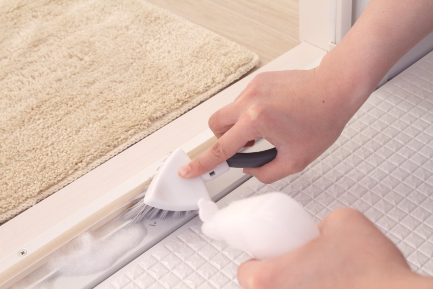 壁の目地や隅のコーナーや、扉のレール部分、バスタブのフタの溝など、今まで届かなかったお風呂の隅々の汚れまでスッキリキレイにお掃除できるブラシです。