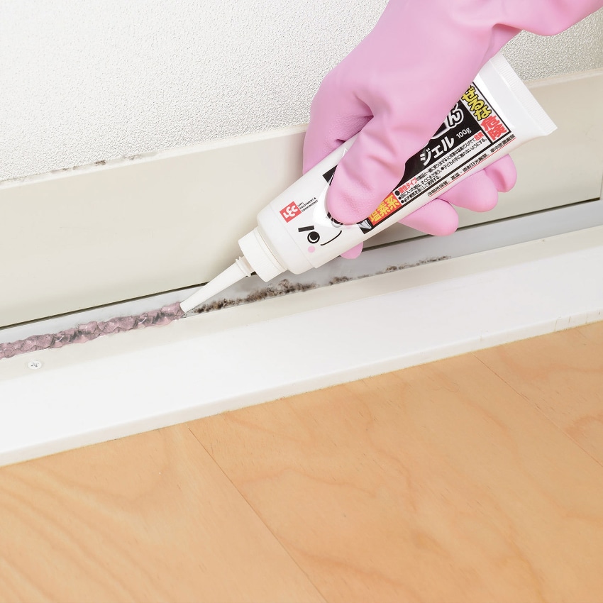 ゴムパッキンやタイル目地のガンコで落ちない黒カビに!たれずに密着して強力にカビを分解する特殊ジェルタイプ。