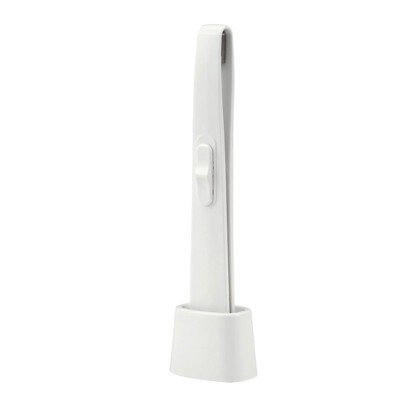 先端がギザギザ形状なのでシートをしっかり挟めます。先端は便器にキズが付かないクッション構造です。