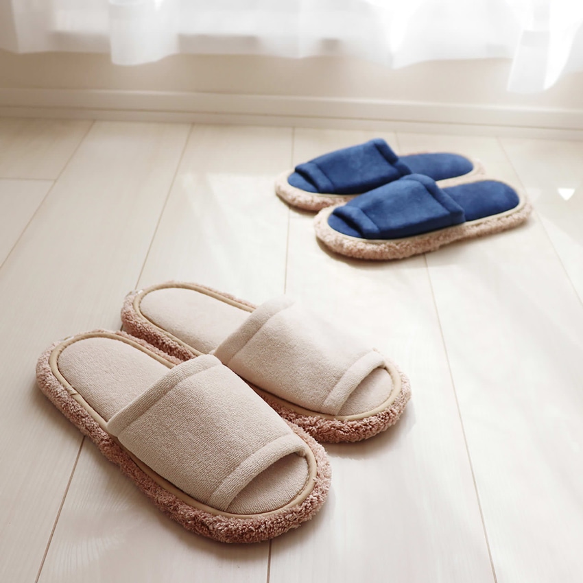 度な柔らかさで履き心地◎柔らかすぎない底板と、乾きやすさを兼ね備えた適度なクッションの厚さが、屋内スリッパを履いているような履き心地です。