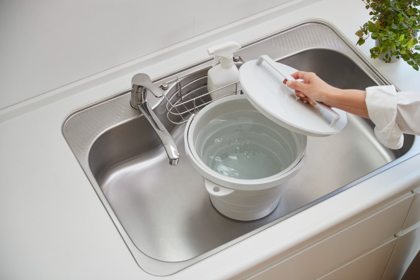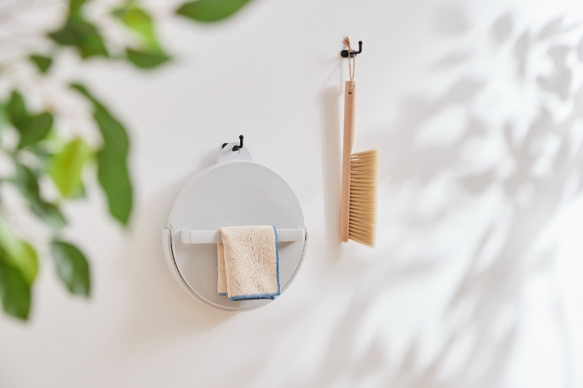 フタ付きタイプは引っ掛け収納時にフタの持ち手に雑巾もかけられます。