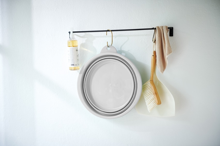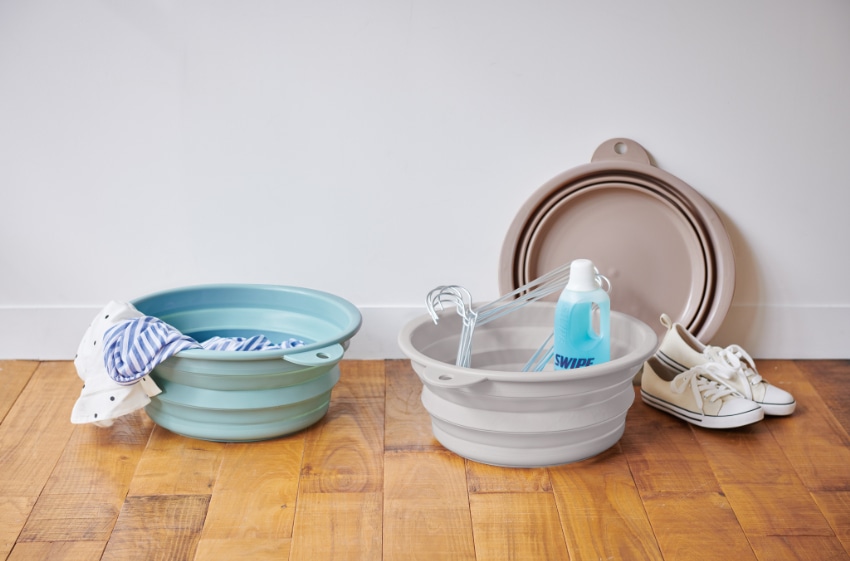 やわらか素材のソフトタブにくすみカラーが登場!使用しない時は、畳んでコンパクトに収納できます。吊り下げ穴付きで、引っ掛け収納もできます。