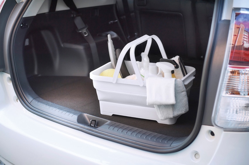 使わない時はたたんでコンパクトに収納。持ち運びに便利な持ち手付き。