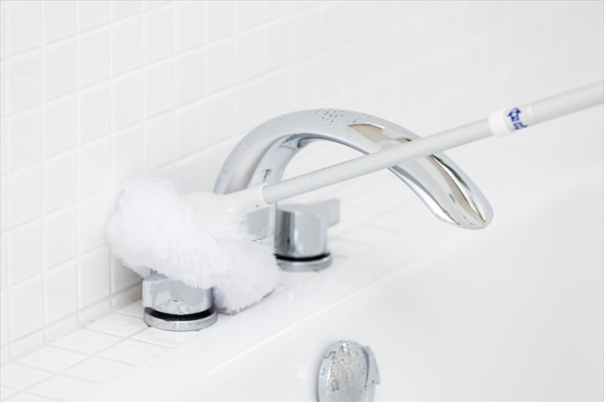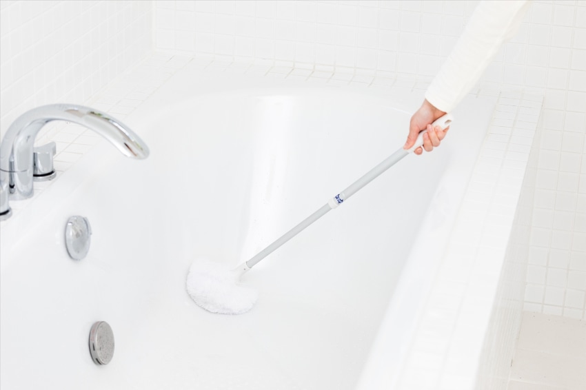 力をいれずになでるだけで石けんカスやヌメリが落とせます。水だけでも汚れが落ちるのがポイントです。