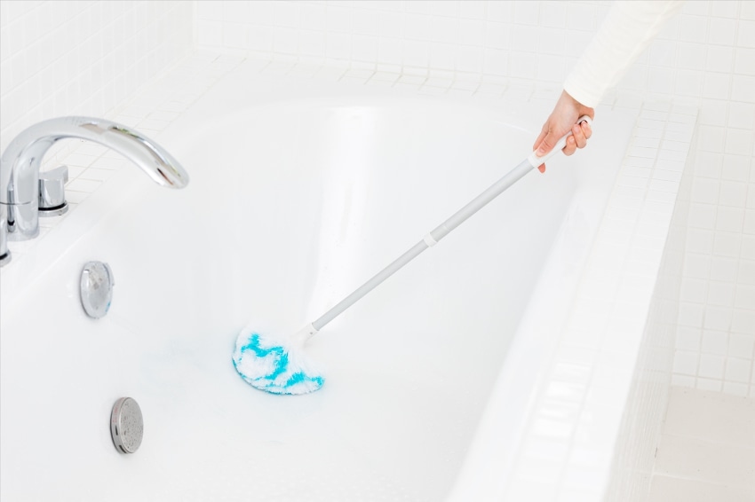 力をいれずになでるだけで石けんカスやヌメリが落とせます。水だけでも汚れが落ちるのがポイントです。
