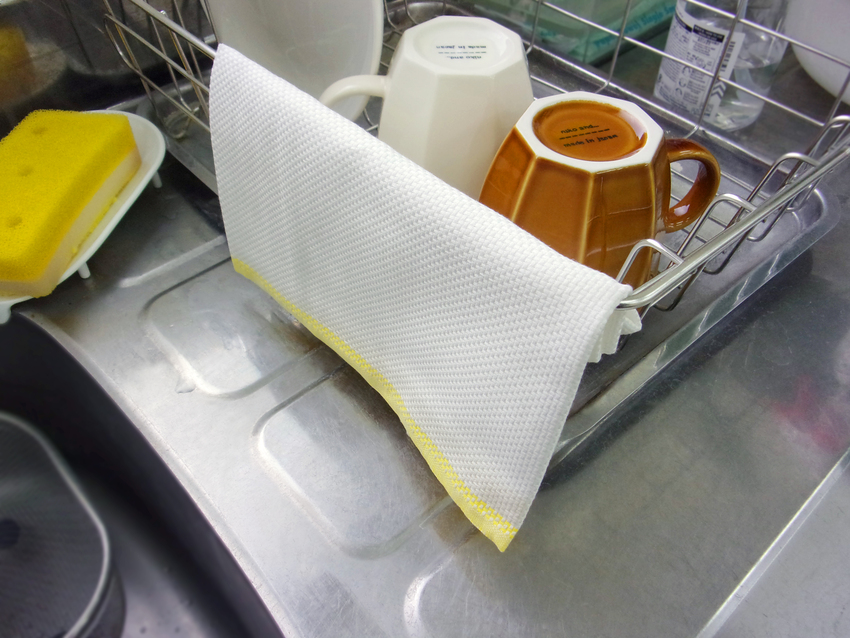 機能性に優れたロングセラー布巾。吸水性に優れており、食器の水滴をきれいに拭き取れます。