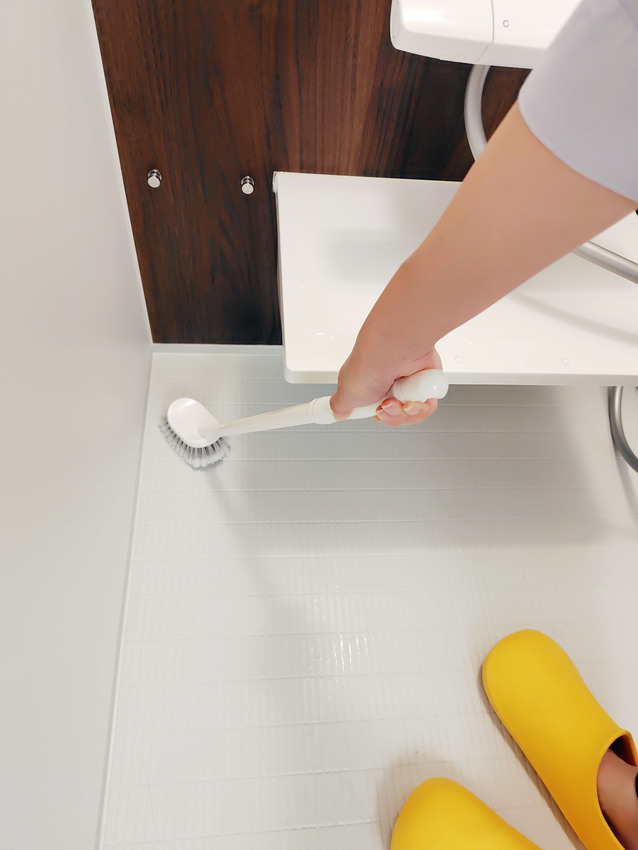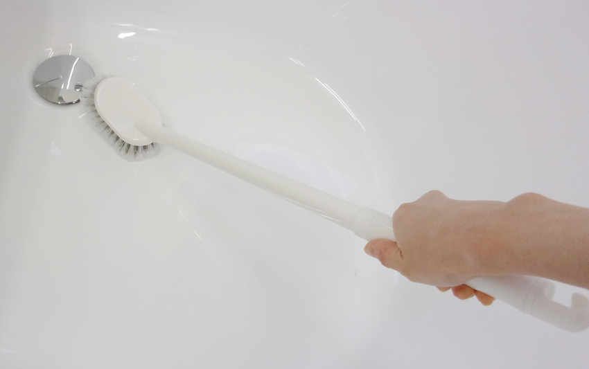 すきまの汚れも落とす先割れブラシ。シンプルなバスブラシです。かがまず掃除できる長柄タイプです。細かな毛先がすきまの汚れを落とします。