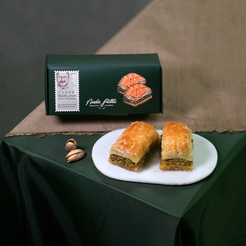 ピスタチオバクラヴァ:薄いパイ生地が40層にも重なった、定番のバクラヴァ。