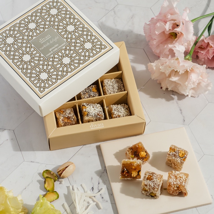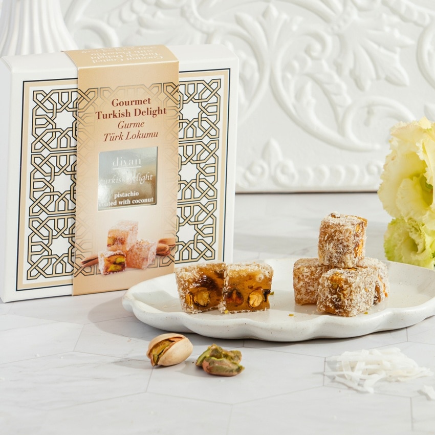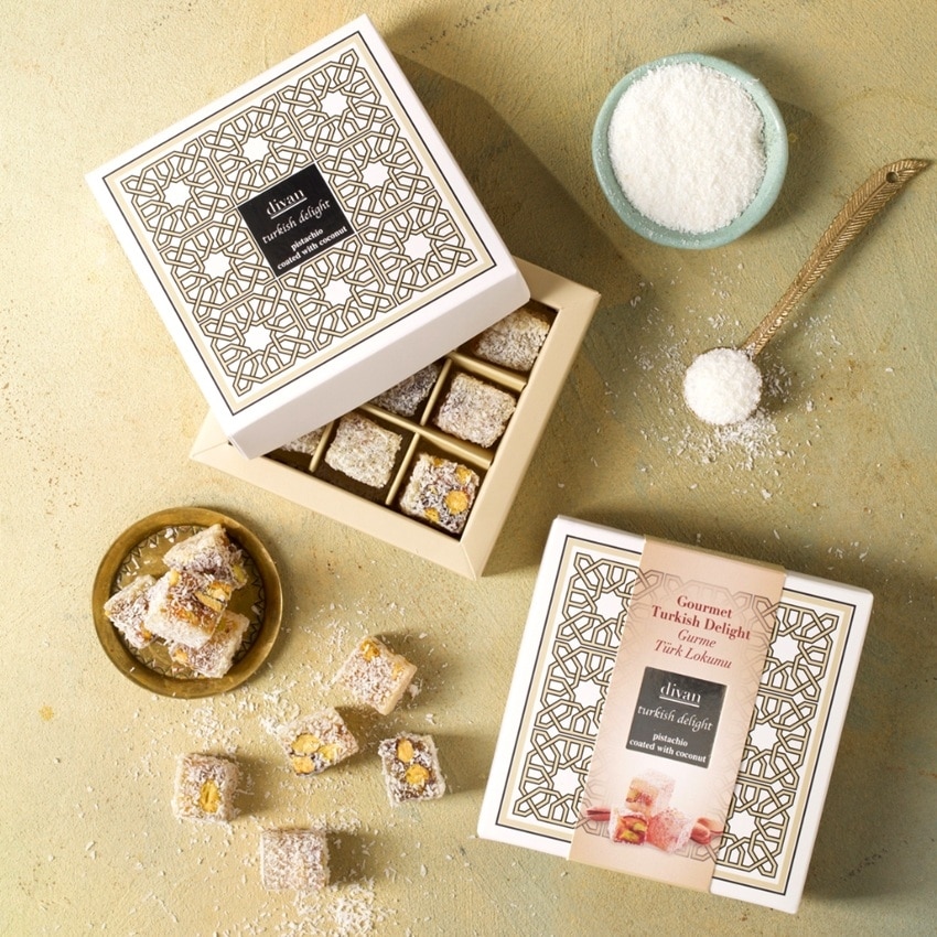 ナッツやフルーツで自然に味付けされた、もちもちした食感が特長の小さなキューブ型のトルコの伝統菓子。