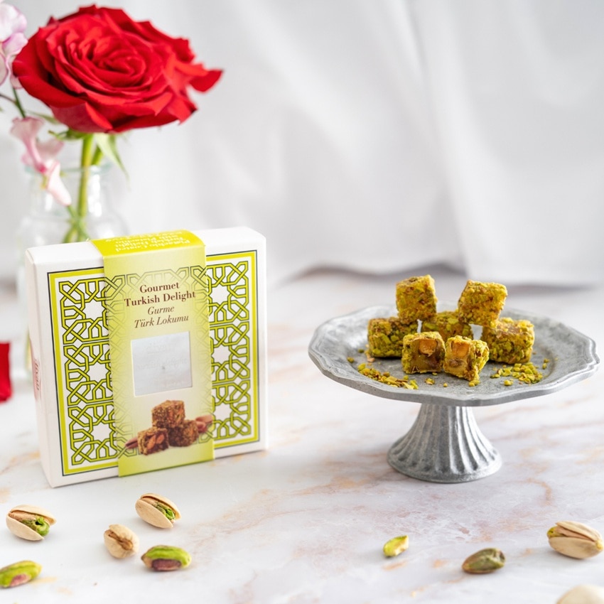 ナッツやフルーツで自然に味付けされた、もちもちした食感が特長の小さなキューブ型のトルコの伝統菓子。