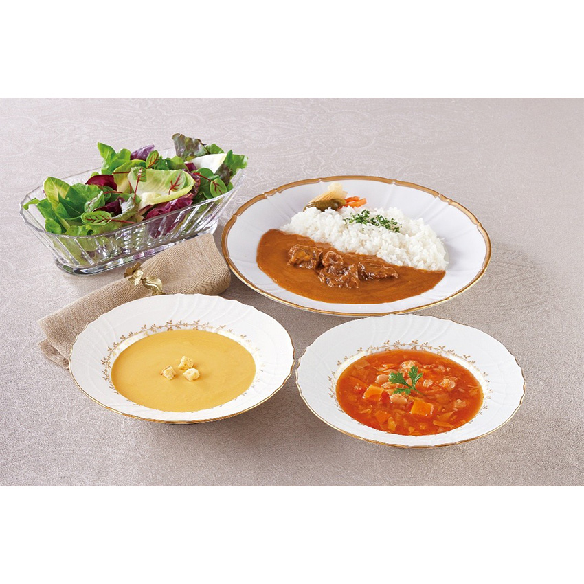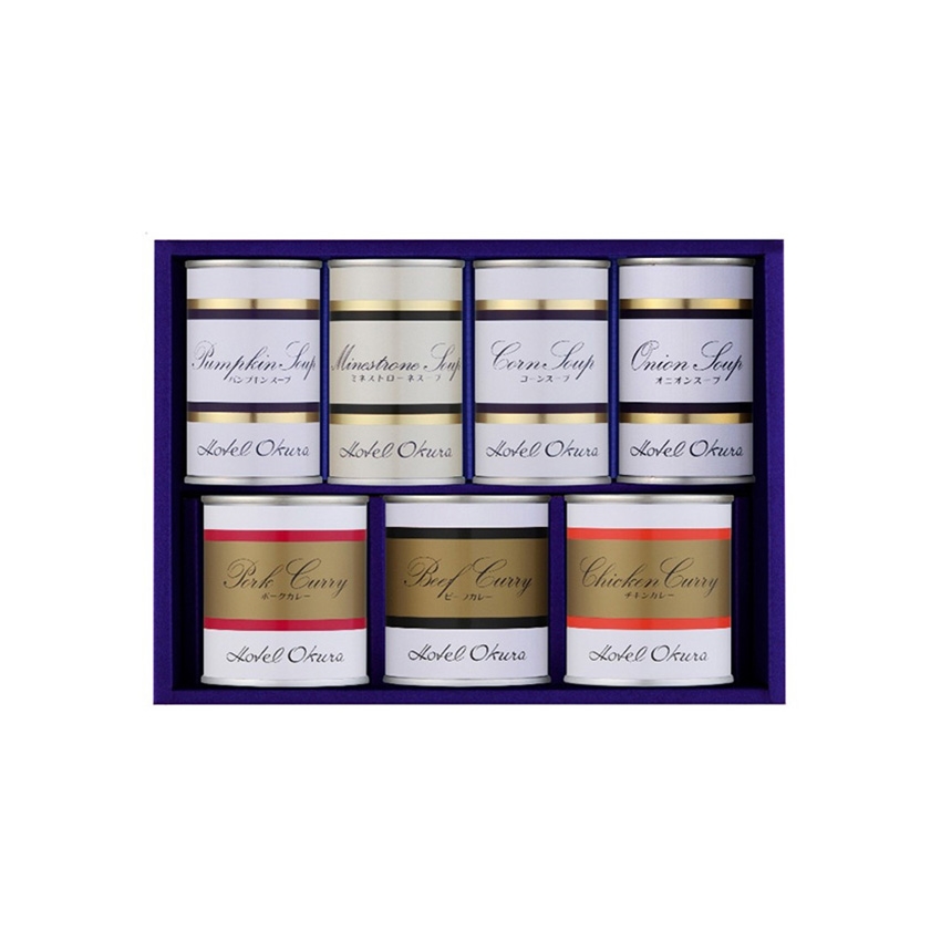 ホテルの美味しさをご家庭の食卓でお楽しみください。スープ缶詰と調理缶詰が一緒になった人気のギフトセットです。