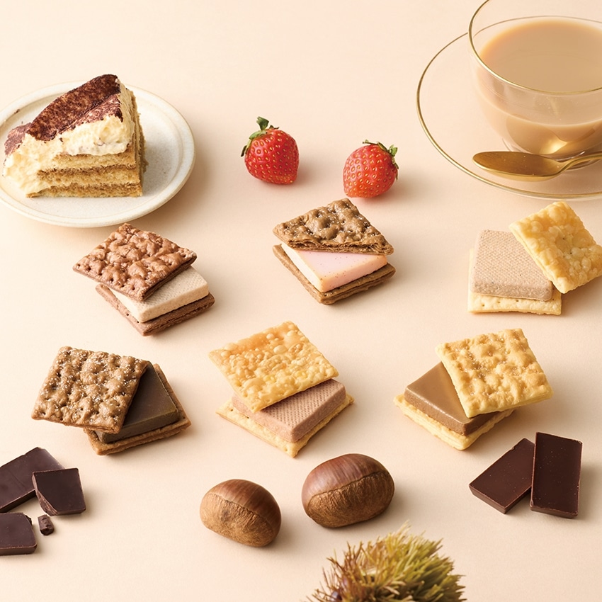 ビター、ミルク、ストロベリー、ティラミス、マロン、ロイヤルミルクティーの6つの味がお楽しみ頂けます。