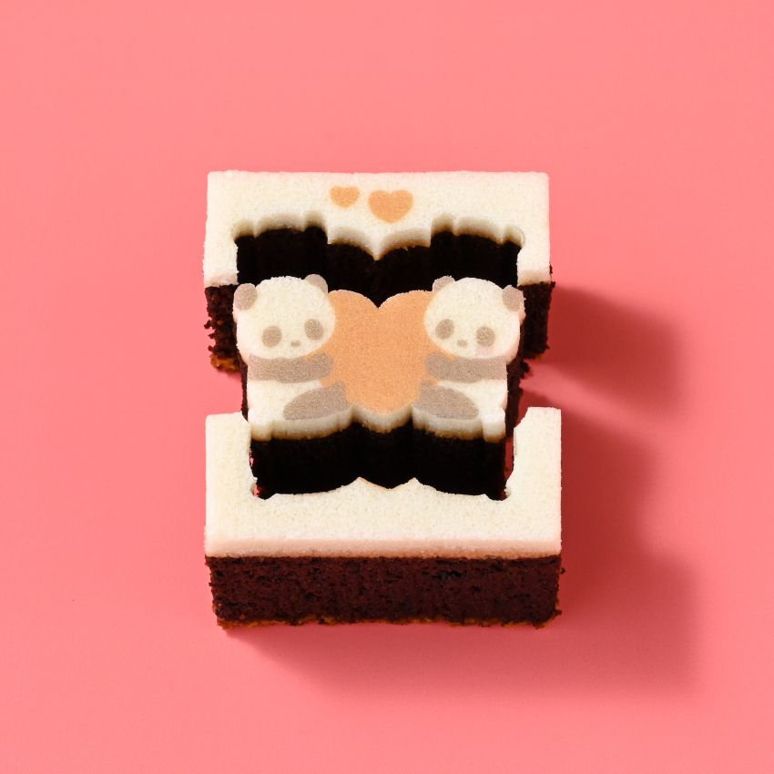 いちばん上の真っ白生地をキャンバスにして、ハートを贈る、恋するパンダのプリントとカットをほどこしました。