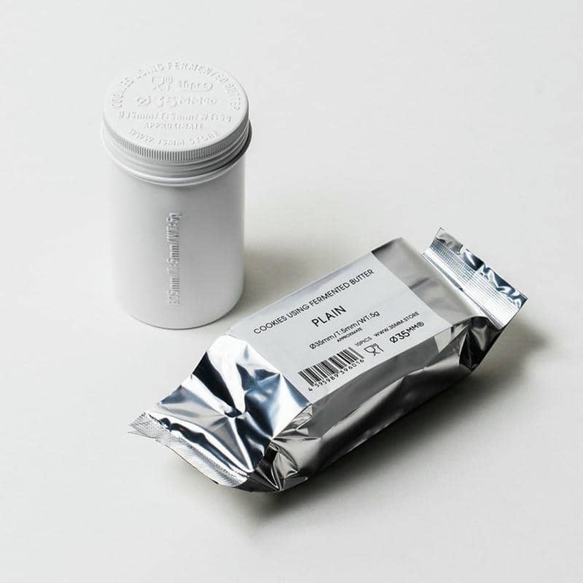 隠し味にほんの少しだけ塩を加えたプレーン味のクッキーを、白い缶につめました。