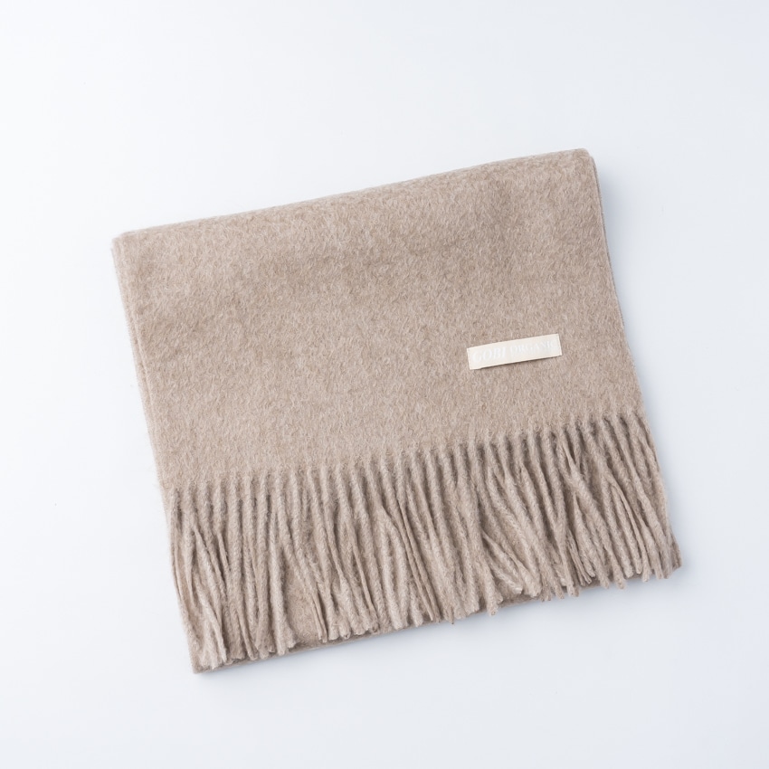 こちらはモンゴルにしか生息しない4種類のカシミヤ山羊の天然の色を活かした染色を施していないオーガニックカシミヤのマフラーです。