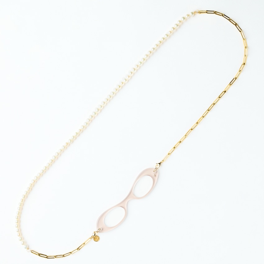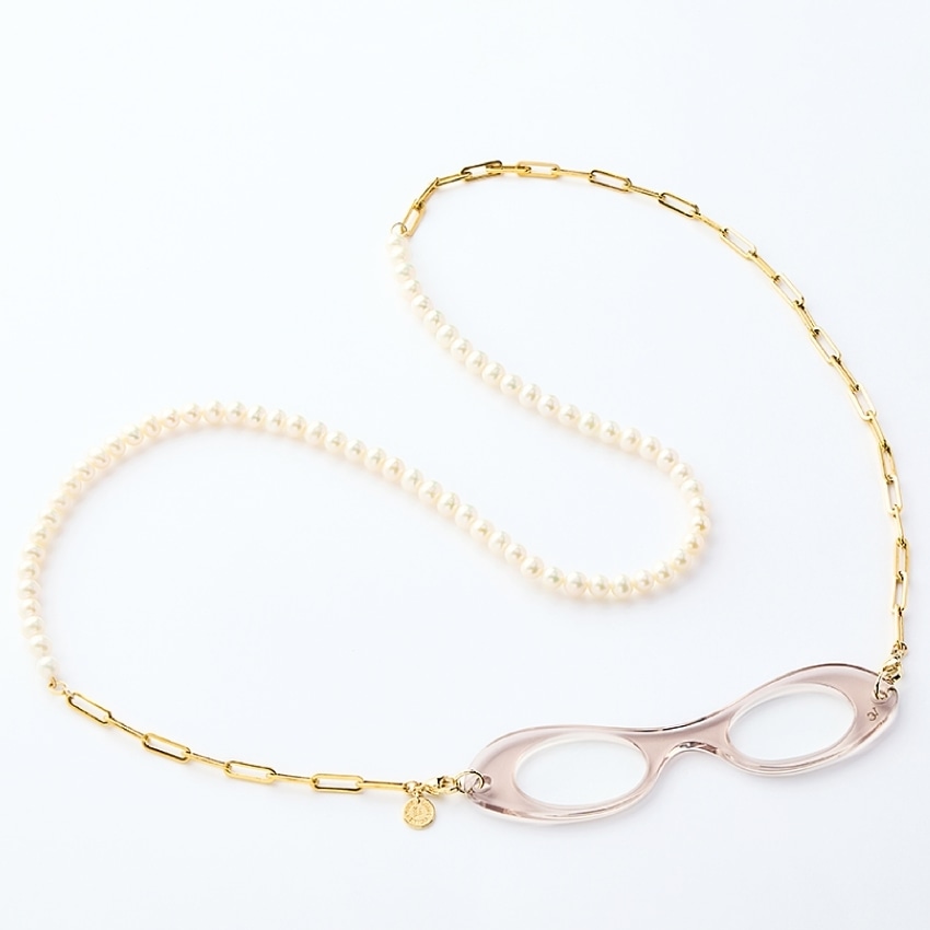 ルーペを外して、パールのロングネックレスとして、お手持ちのジュエリーとコーディネートをお楽しみ頂けます。1連でシンプルに、2重で華やかに首元を彩ります。