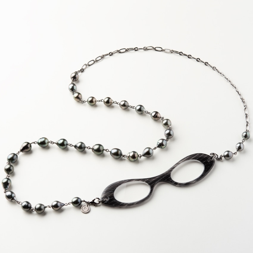 ルーペを外して、パールのロングネックレスとして、お手持ちのジュエリーとコーディネートをお楽しみ頂けます。1連でシンプルに、2重で華やかに首元を彩ります。