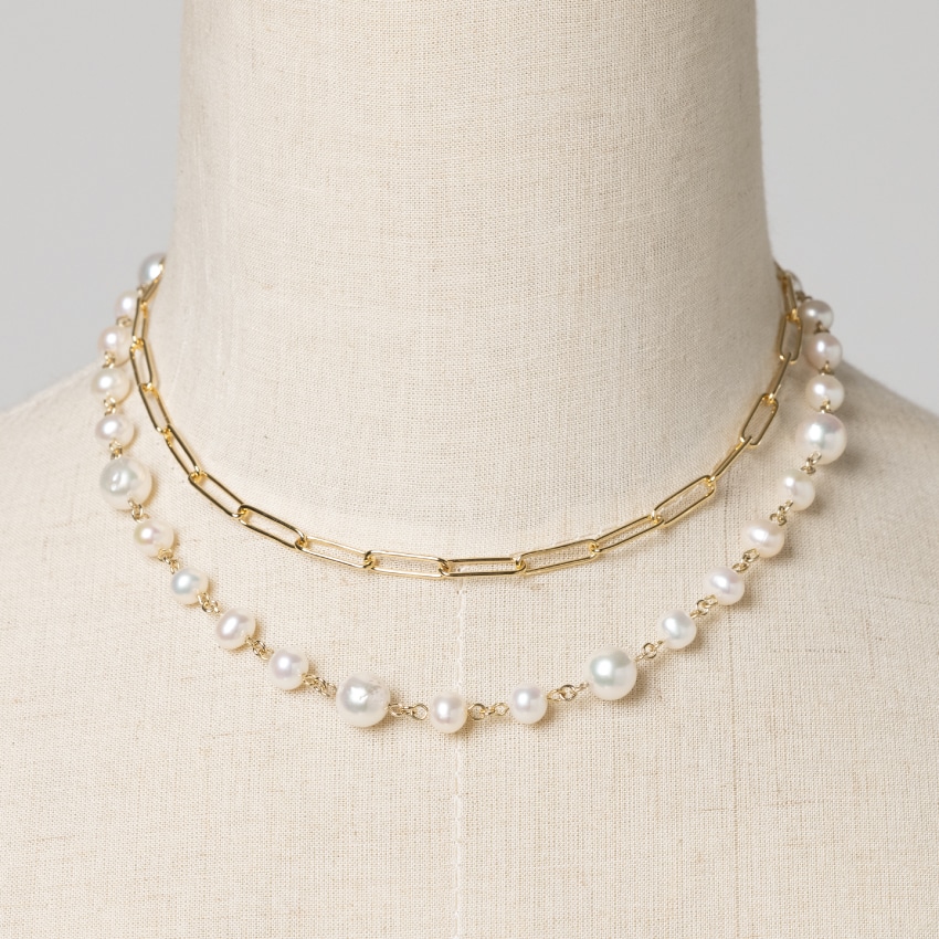 ネックレス:あこやバロックパール、淡水パール、サージカルステンレスチェーン (K18P)、留め具(K14GF)