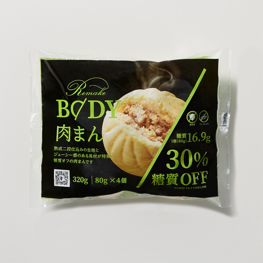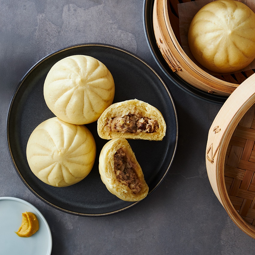 「おから」や「大豆粉」をブレンドしたオリジナルの生地で包みました。ふんわりモチモチとした食感の肉まんです。