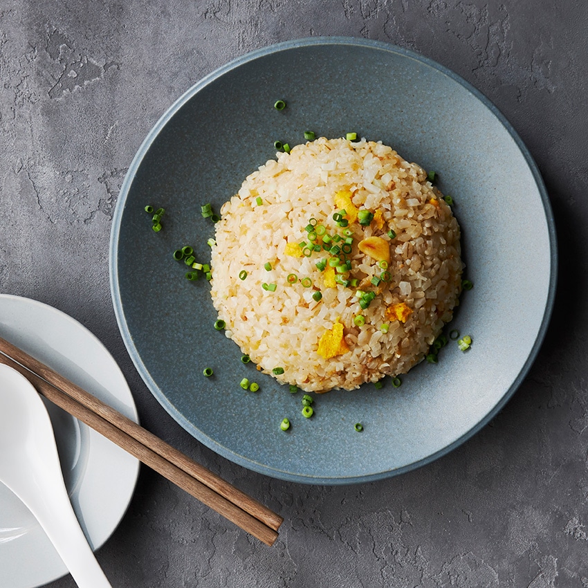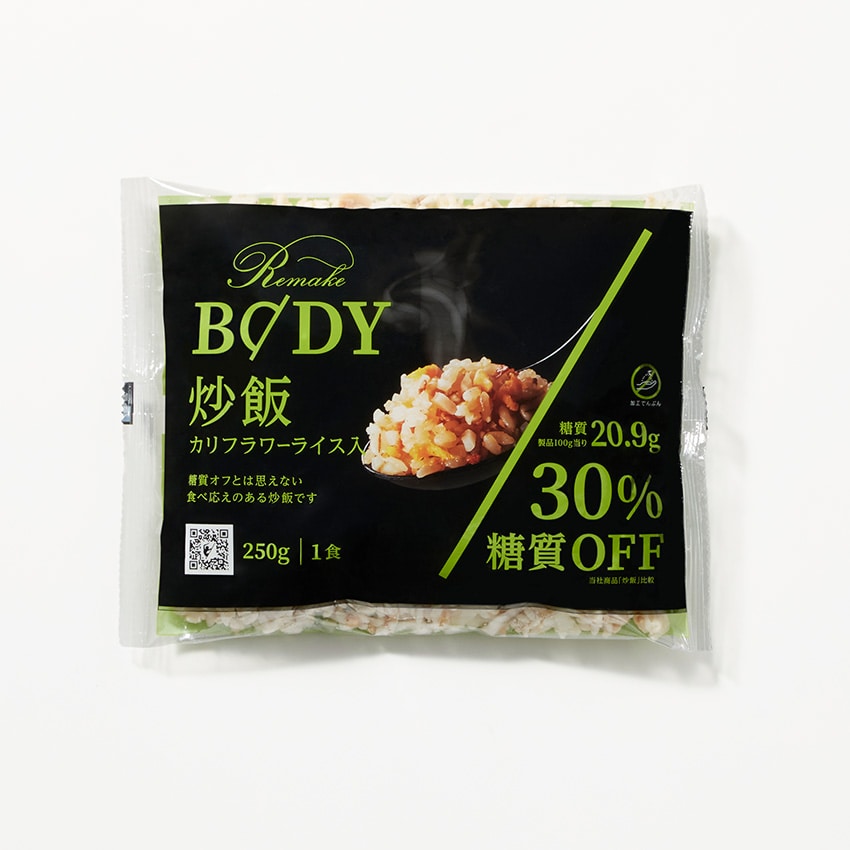 カリフラワーライスを約34%配合した低糖質炒飯です。