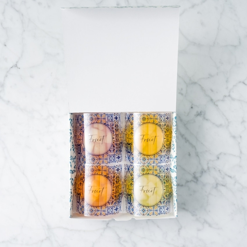 ■ 内容量:4個入(白桃、黄桃、洋梨、マンゴー×各1個)