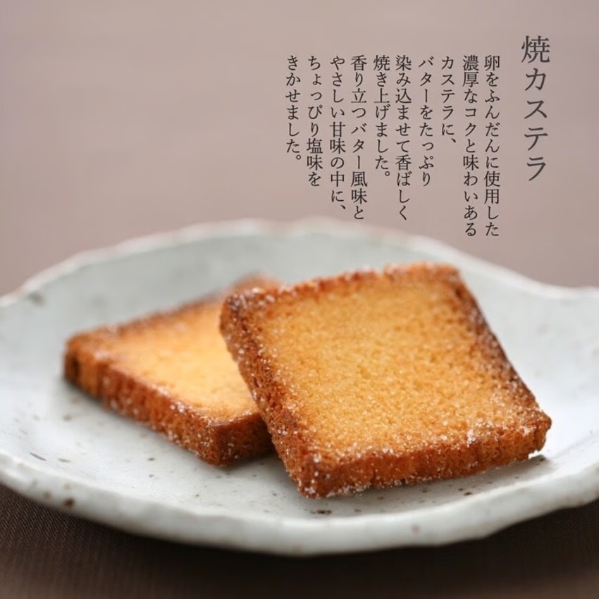 スライスした特製のカステラにバターを染み込ませ、 さくりと香ばしく焼き上げました。