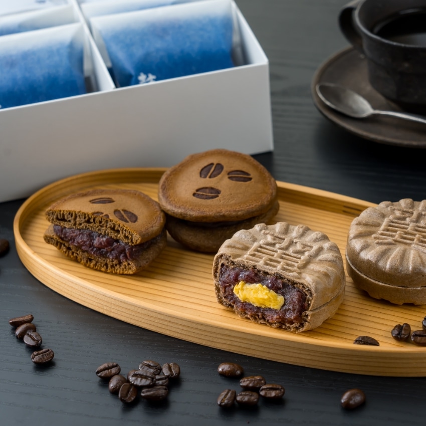 1957年創業の「三本珈琲」と京都・祇園の和菓子店「仁々木」による、羽田空港限定のコラボ商品です。コーヒー豆を餅種に閉じ込めた「翼もなか」と、コーヒーの香りやコクを閉じ込めた生地に粒餡を挟んだ「鼓かさね」の詰め合わせとなっています。