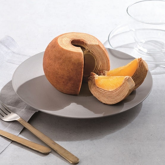 丸ごとリンゴのシロップ煮をバウムクーヘンで包み込んでいます。リンゴの歯ごたえとしっとりしたバウムクーヘンのコントラストを楽しめます。