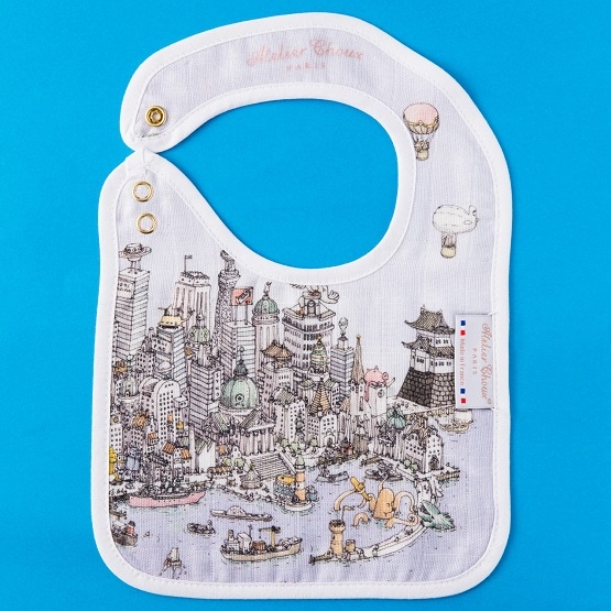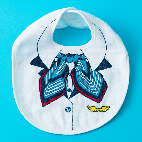 「ART DE VIVRE -生活の中にアートを取り入れる」というコンセプトのもと、ものづくりを行っている「amabro」のスタイ(よだれかけ)です。CA風のデザインで、かっこよく決めることができます。