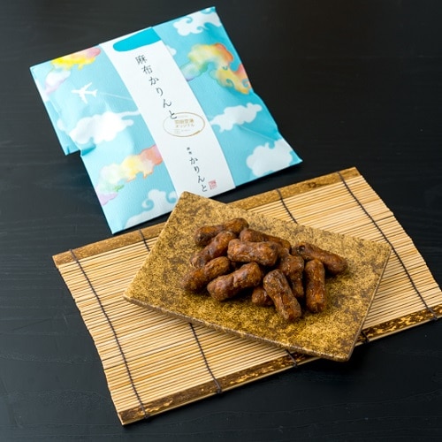 麻布十番に本店を構えるかりんとう専門店が手掛ける、黒糖味の基本のかりんとうです。羽田空港限定のパッケージとなっています。